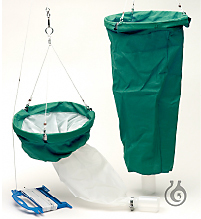Rugged version with strong galvanised ring with a diameter of 200 mm. The ring is covered with green linen fabric with a double seam to protect the silk gauze, the fine plankton net material, from ripping. Supplied with a 100 ml PE sampling flask (100 ml Kautex flask).