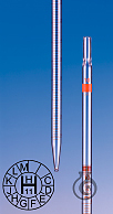 Pipettes graduated to the tip, tolerances better than Class B, short line graduation, AR-GLAS®, clear glass, acc. to DIN EN ISO 835, type 3, graduation and markings in durable amber stain. EX calibrated. For 5 ml and up, equipped with cotton wool stopper as a standard.